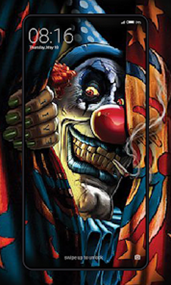 Scary Clown Tapeter är en samling olika skräcktema tapeter. Om du är en fan av skräckfilmer är denna app en bra plats att hitta några av de bästa och mest läskiga tapeterna. Samlingen av olika tapeter har många skräcktema bilder, och de är alla av högsta kvalitet.